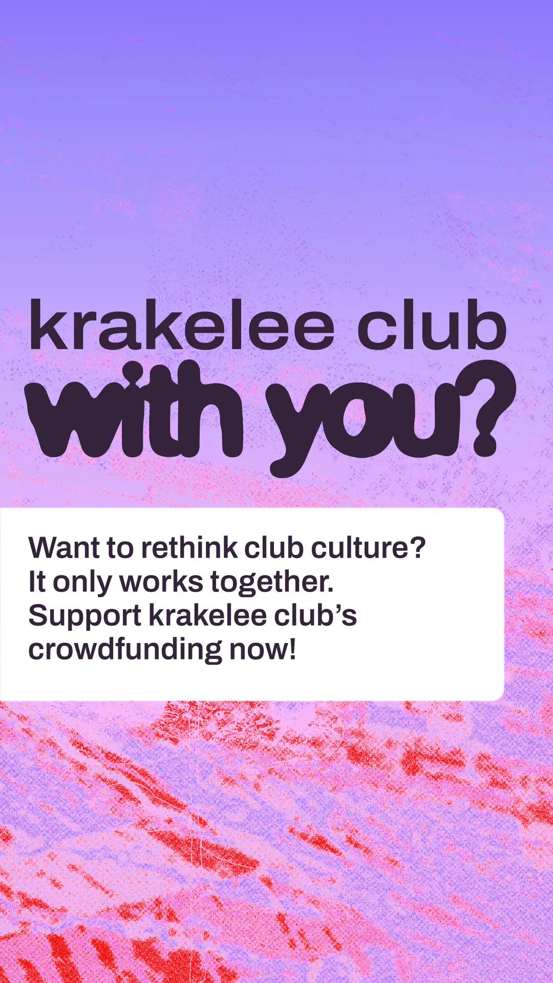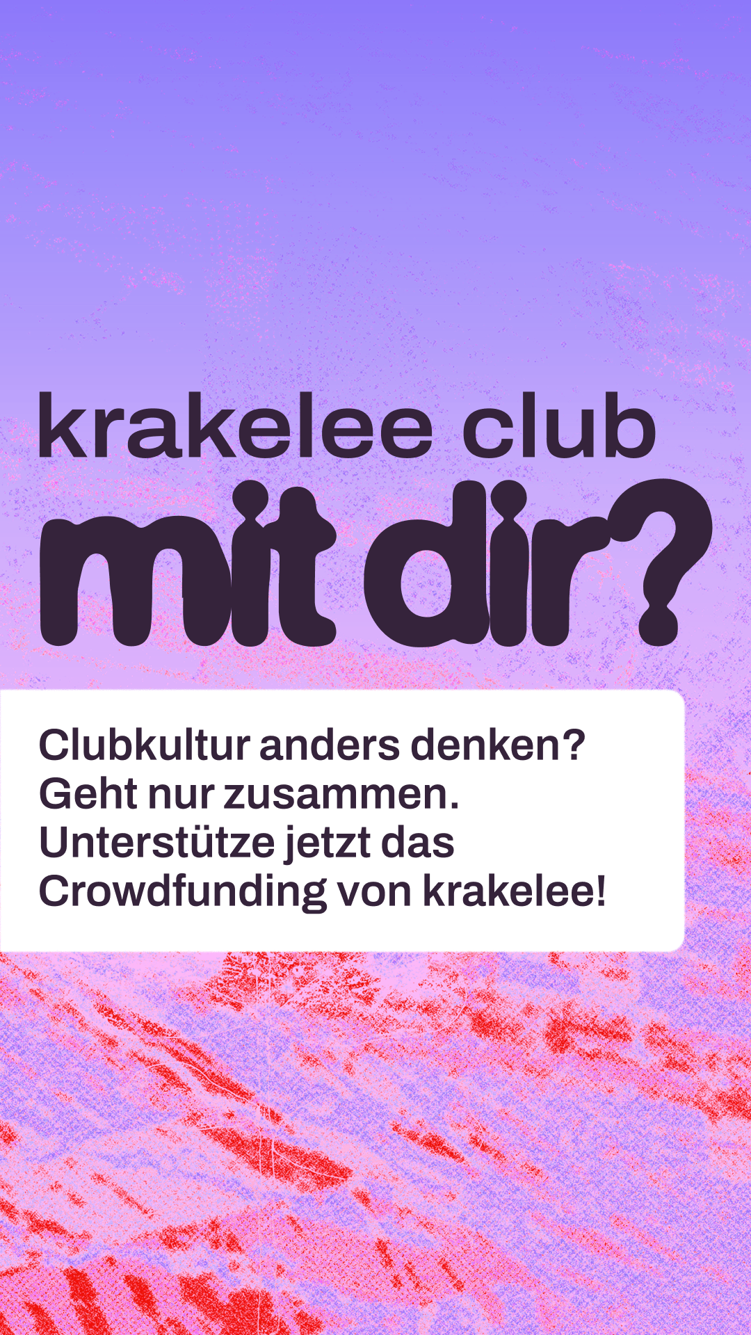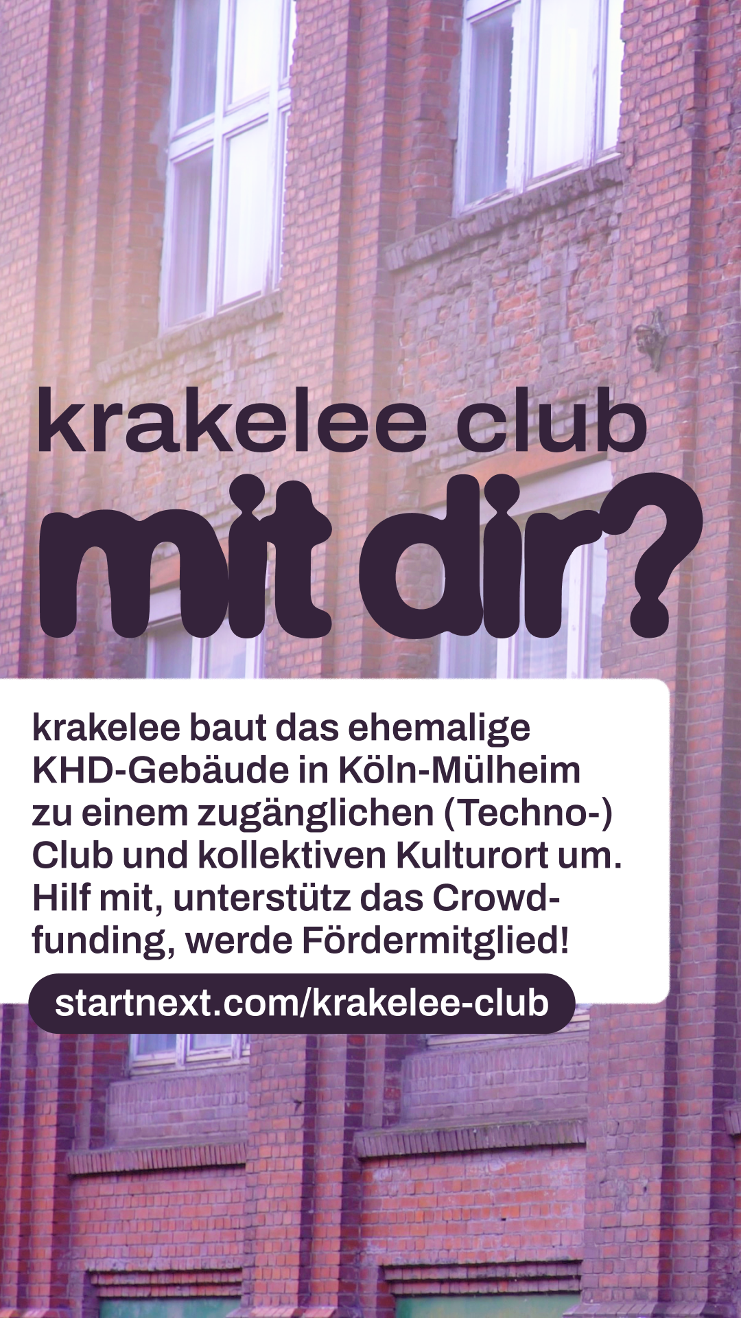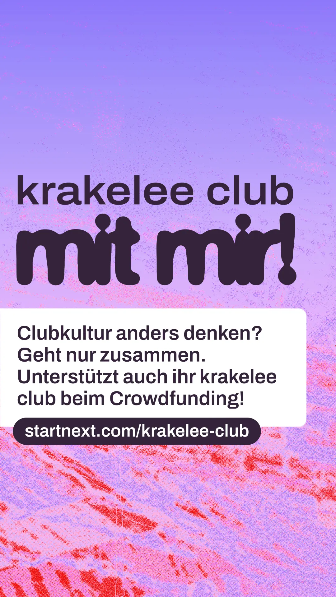 Hi! Kennst du schon krakelee? krakelee ist ein kollektiv organisiertes Projekt, das einen genossenschaftlichen Club in Köln aufbauen will. Ein Ort, der nicht von Profitlogik lebt, sondern von Community, Solidarität und Kultur. Aktuell läuft ihre Crowdfunding-Kampagne, um die nächsten großen Schritte auf dem Weg zum Club möglich zu machen. Wenn du Nachtleben liebst und an gemeinschaftliche Kultur glaubst: